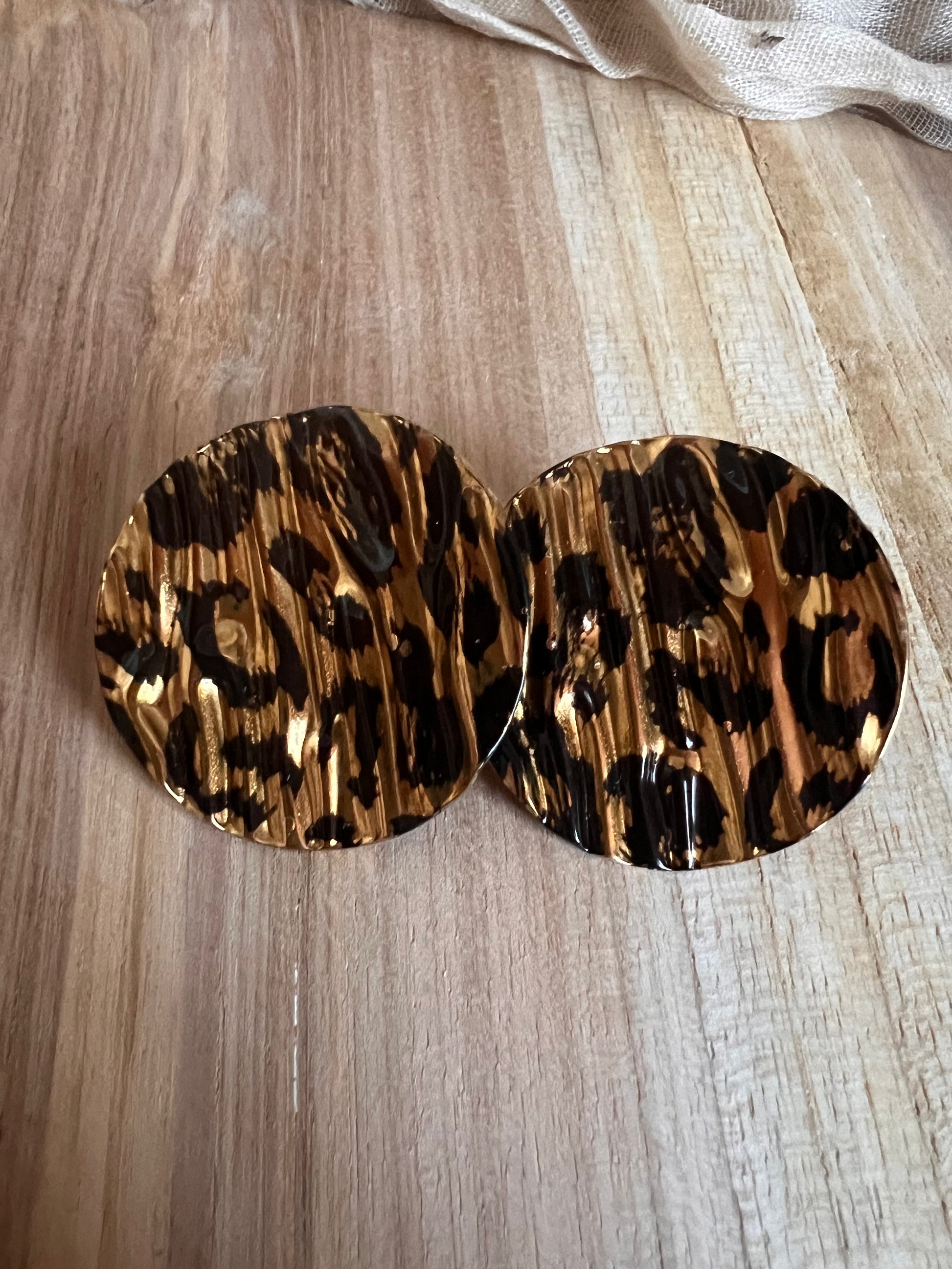Magnifique boucles d'oreilles en acier inoxydable doré unis et imprimé léopard.