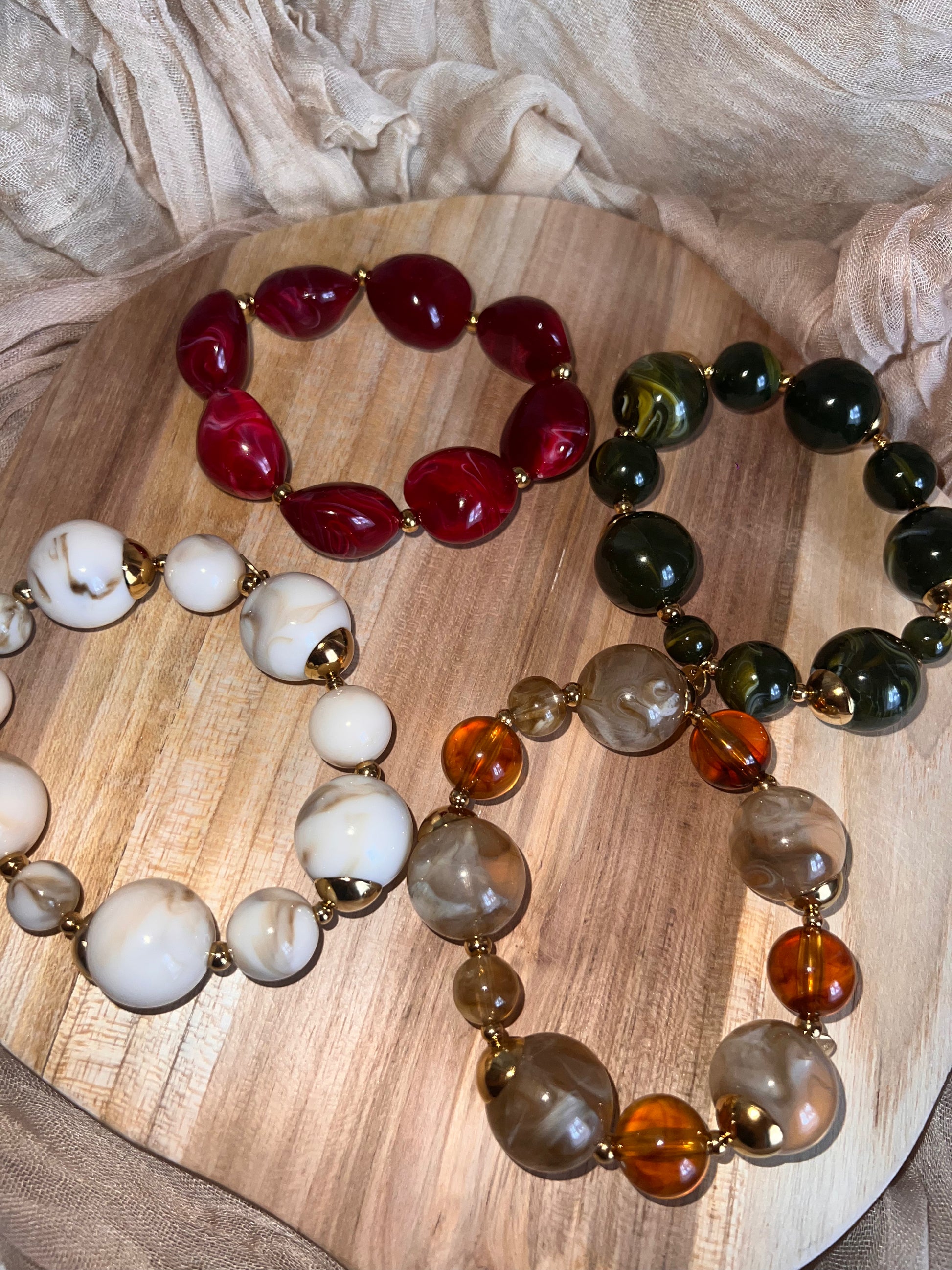 Magnifique bracelet élastique en acier inoxydable et orné de grosses perles. Existe en plusieurs modèles et couleurs.