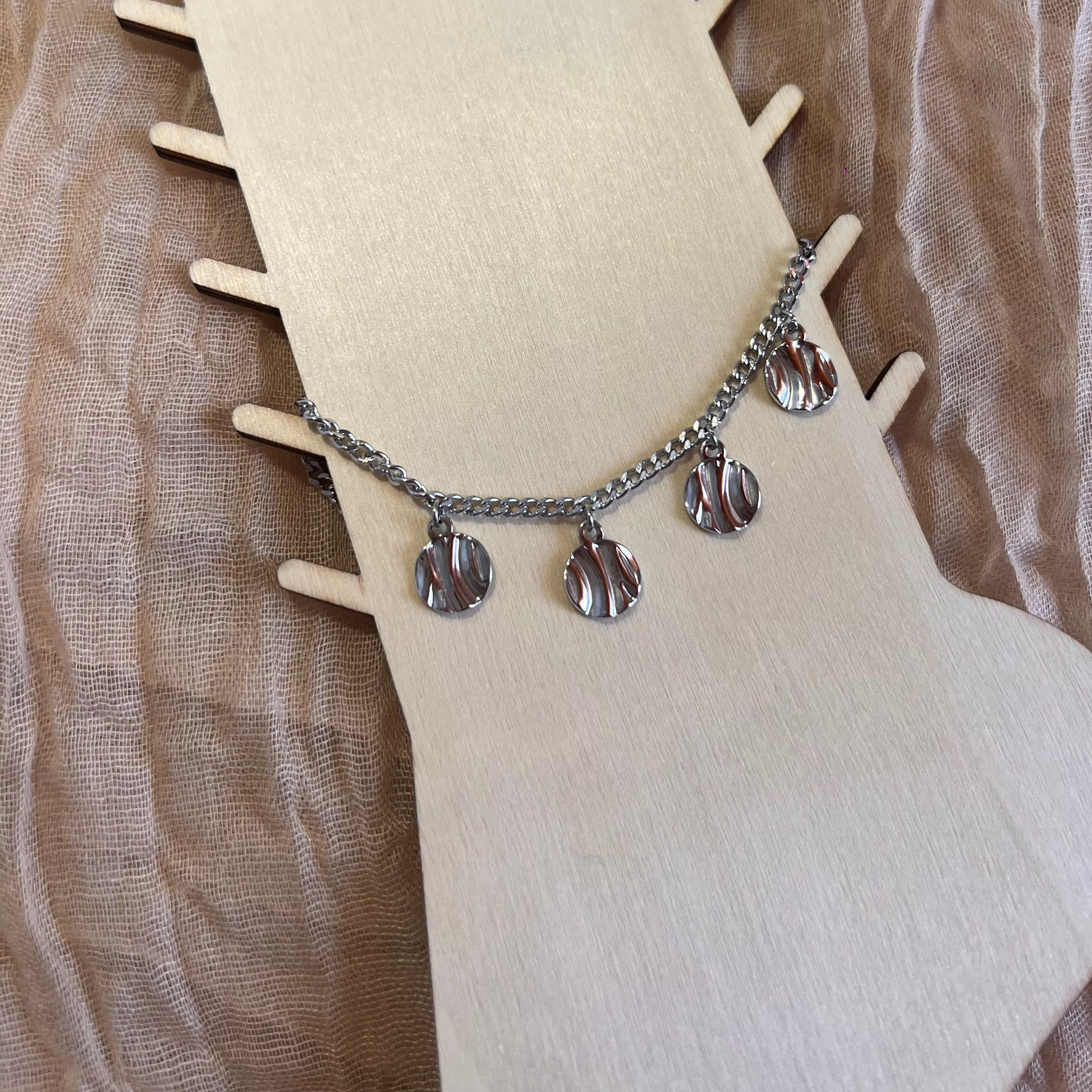 Chaîne de Cheville Argentée Multi Pendantes Disques Ondulées Brillantes. Tous nos produits sont fabriqués en acier inoxydable, un matériel qui résiste à l'eau et au temps.